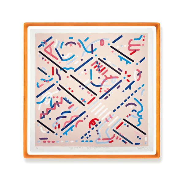 Screen Print based on Open Mind #06: Sweet Streets. This composition is a map of a place visited in the subconscious, where the sidewalks are super smooth and there's only one rule: ENJOY.